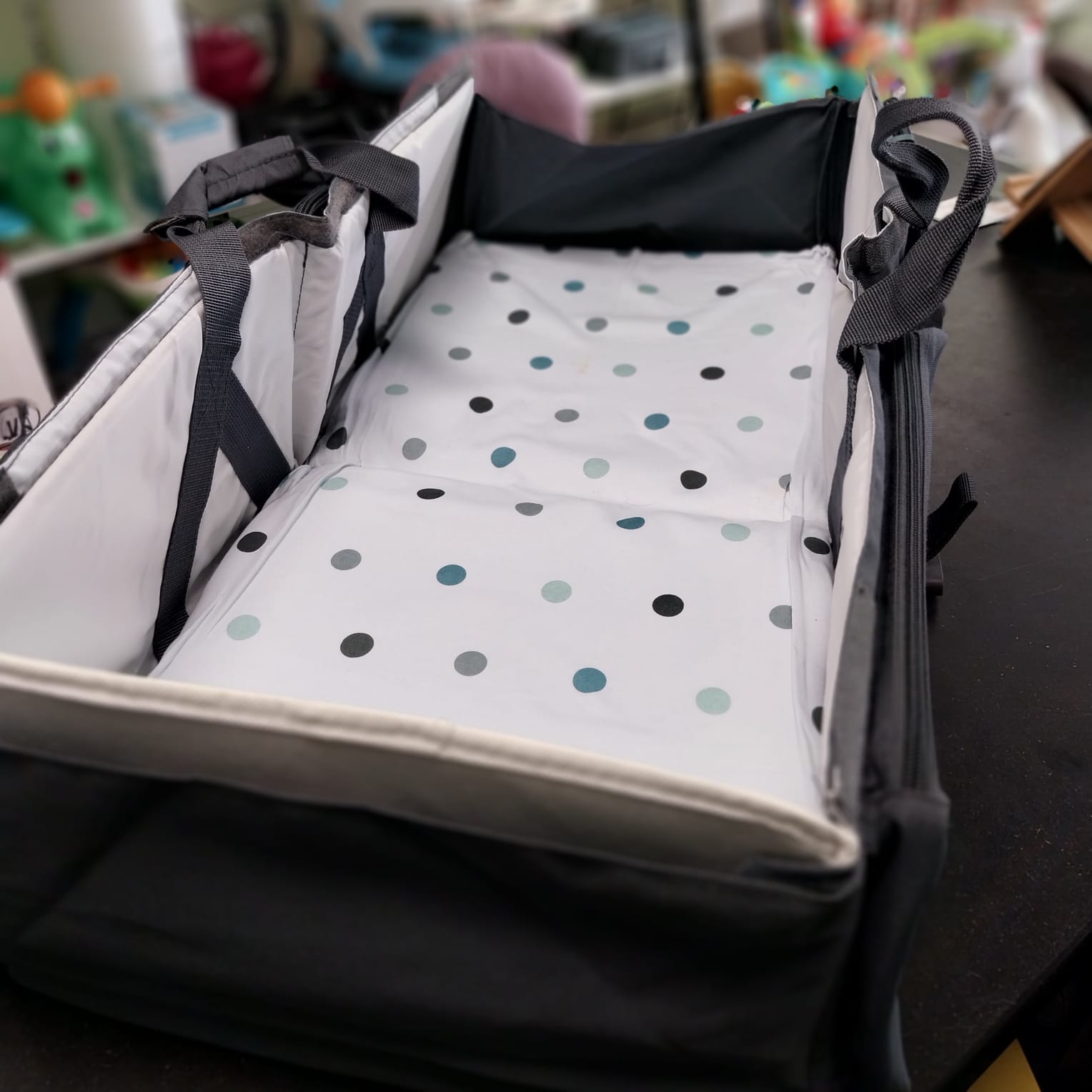 La borsa fasciatoio & culla Baby Travel di Delta Baby è la borsa ideale per la mamma e il suo bebè. Pratica e facile da usare, comoda e multifunzionale, con 5 tasche ampie e capienti di cui una isotermica, si trasforma con un semplice gesto in un pratico fasciatoio e/o in una comoda culla da viaggio!