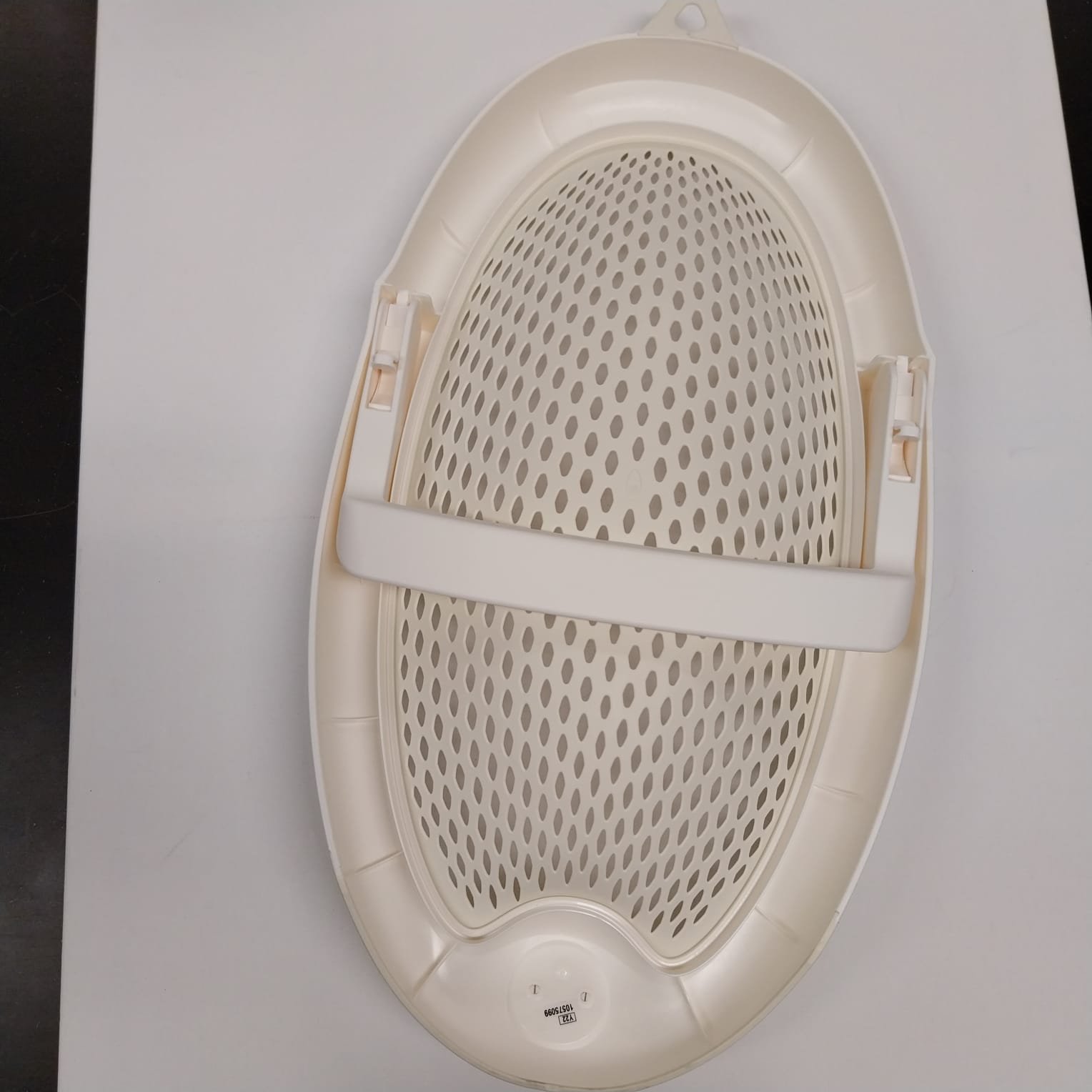 La seduta anatomica in morbida gomma traforata, aumenta la traspirabilità e facilita il risciacquo. La sdraietta è igienica e di facile pulizia, è inoltre dotata di piano d’appoggio antiscivolo.