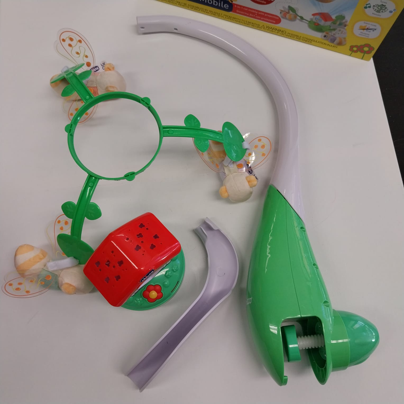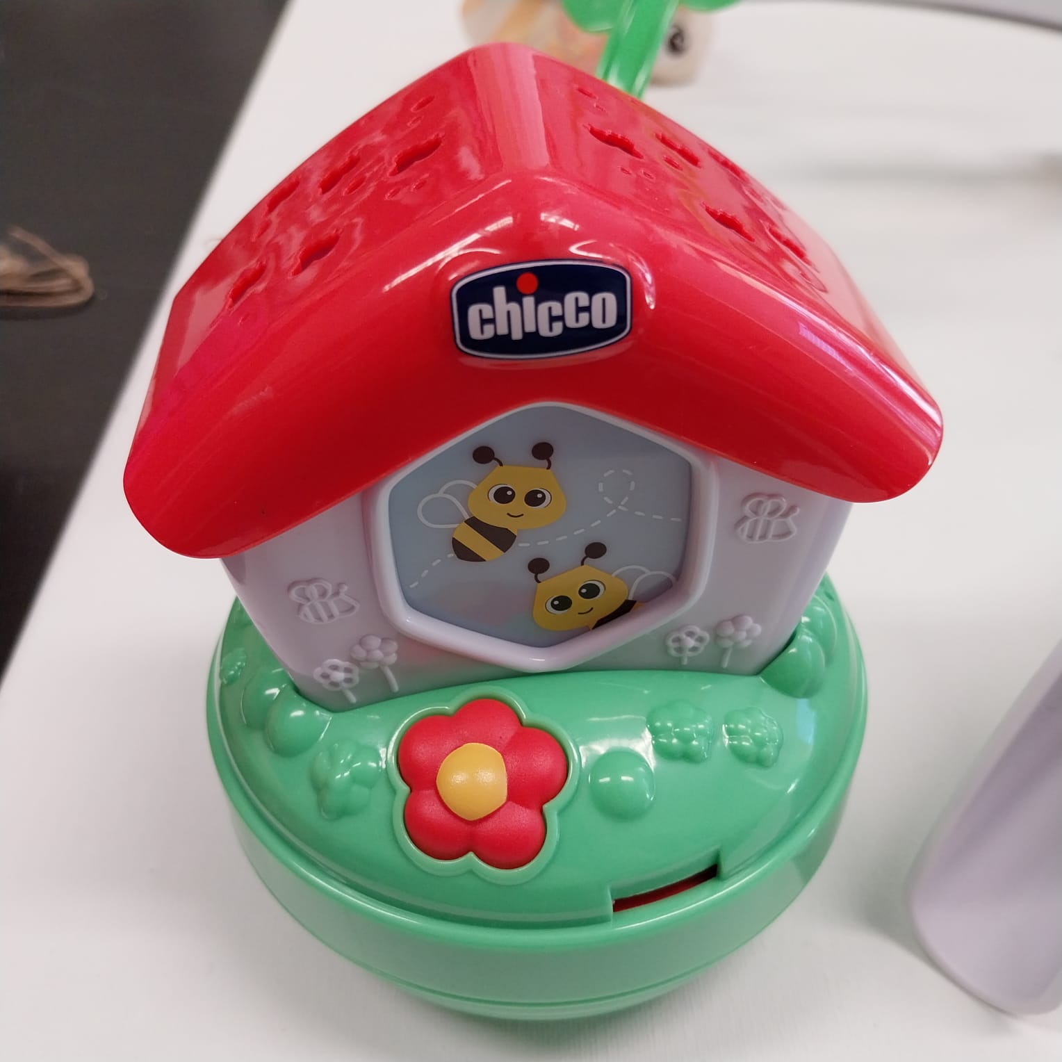 GIOSTRINA ELETTRONICA: Una nuova versione della Casina delle Api Chicco, amata da generazioni di bambini. Con proiezione, luci soffuse e tanta musica per riempire la stanza di colori e melodie rilassanti accompagnando il bambino nei momenti di riposo