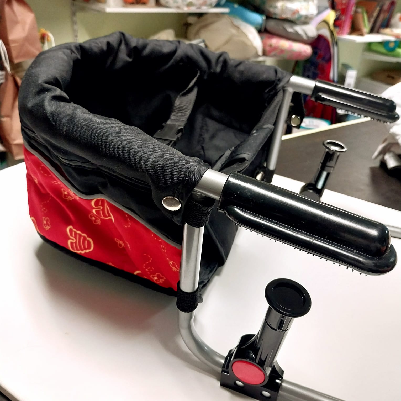 Il seggiolino da tavolo BèbèConfort a un sistema di aggancio sicuro , si adatta alla maggior parte dei tavoli (spessore max 4,5 cm) .