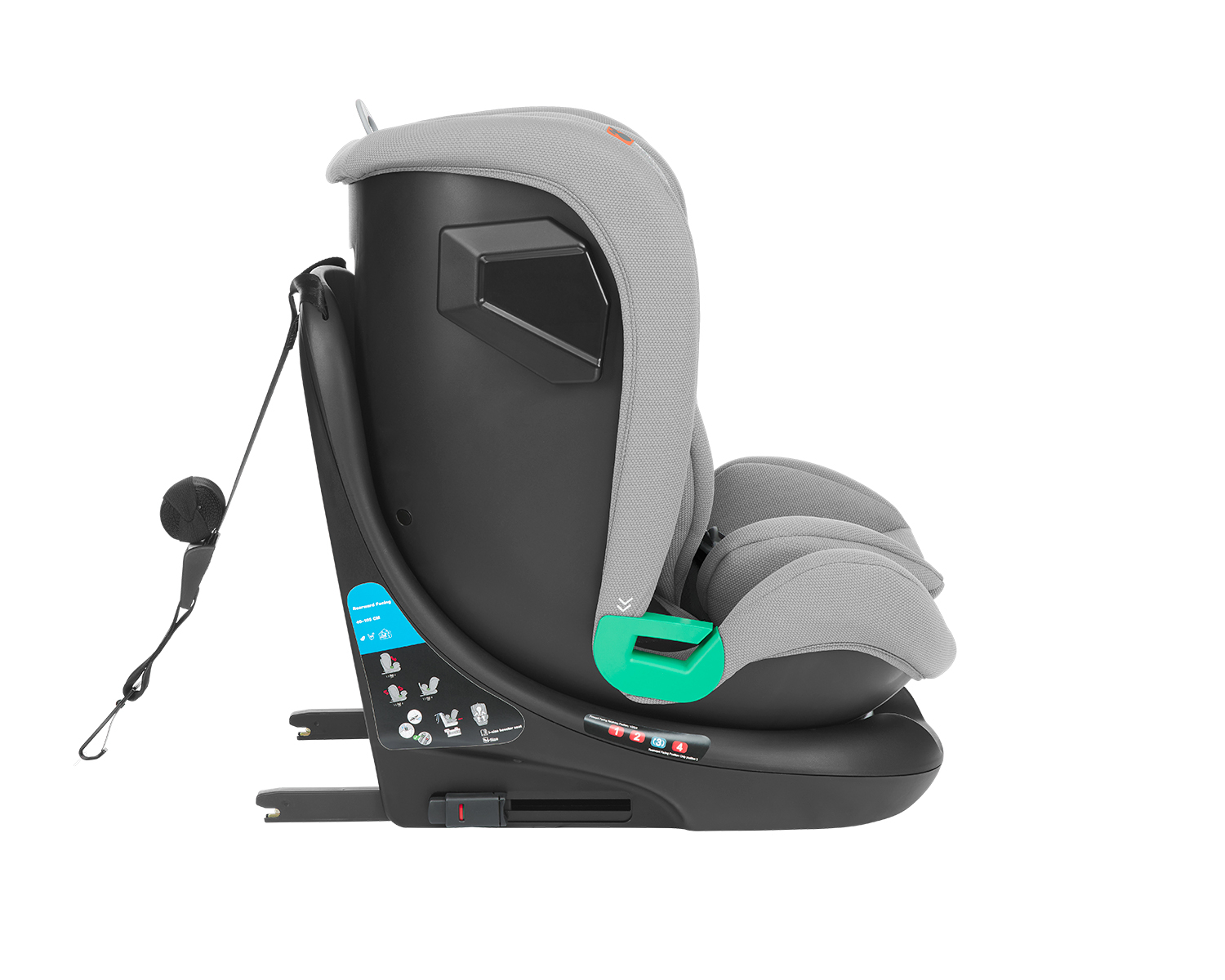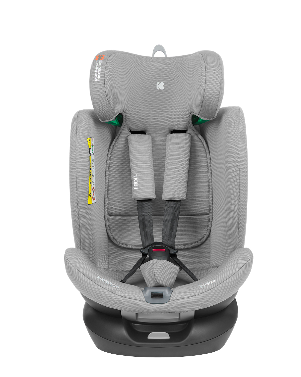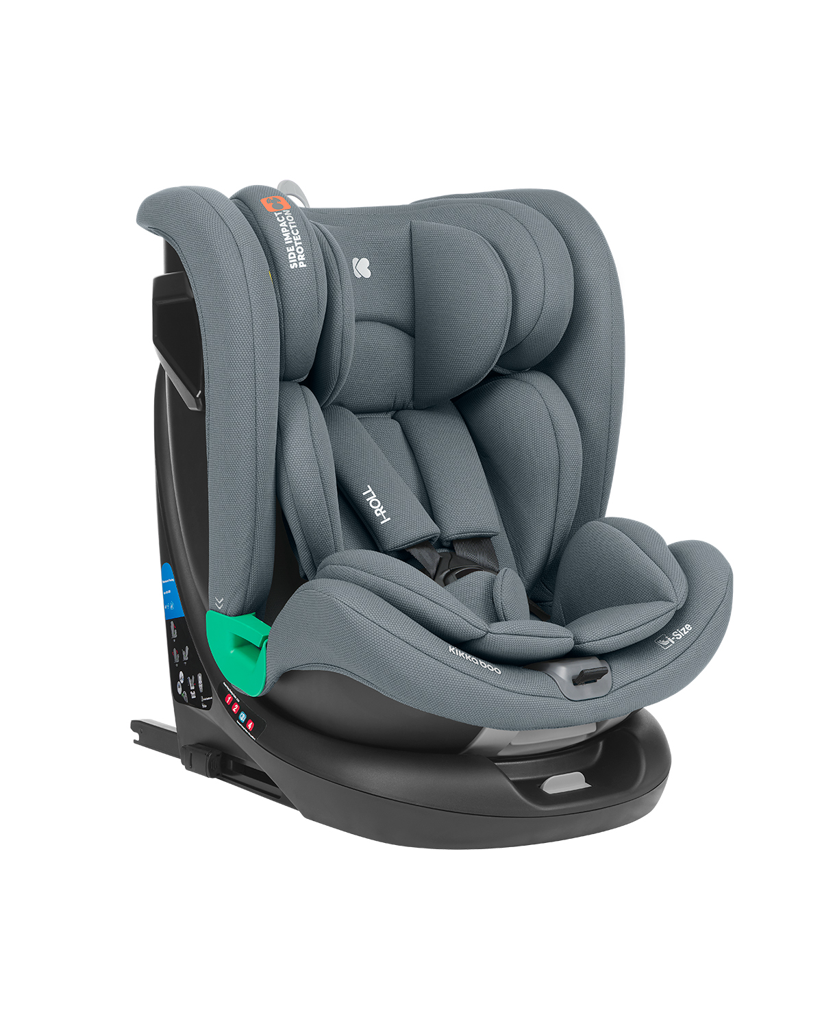 Seggiolino auto Kikka Boo I-Roll i-Size (40-150 cm). Adatto per l’uso in senso contrario di marcia da 40 a 105 cm, e adatto per l’utilizzo nel senso di marcia da 76 a 150 cm.