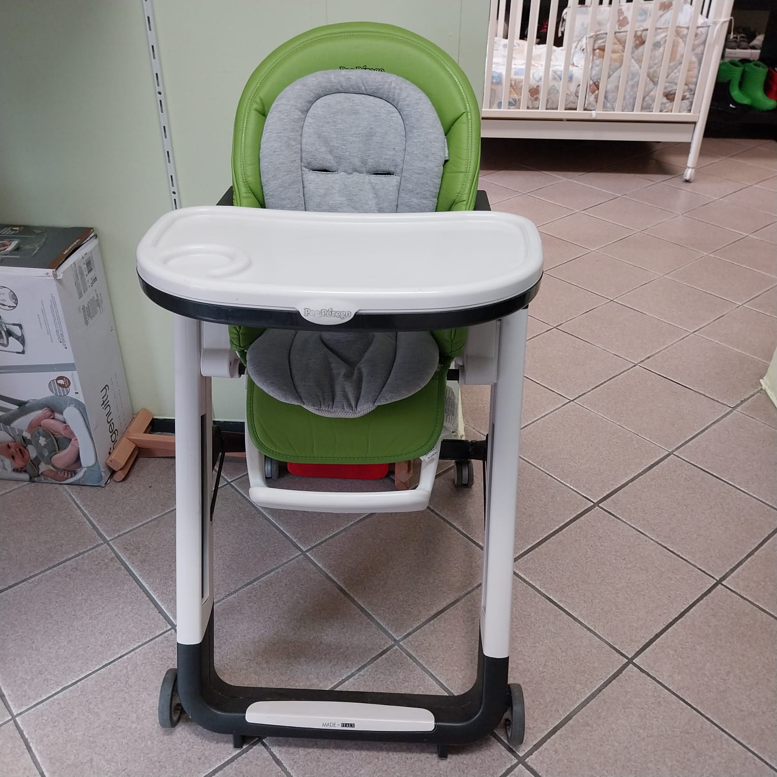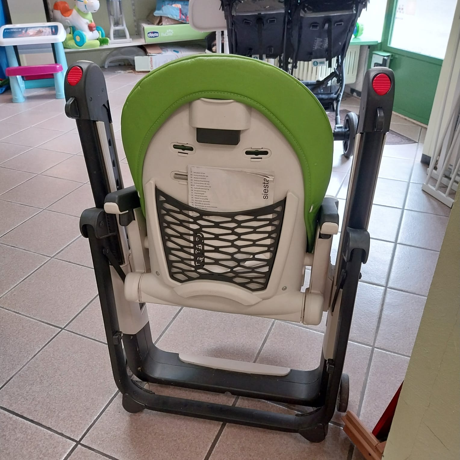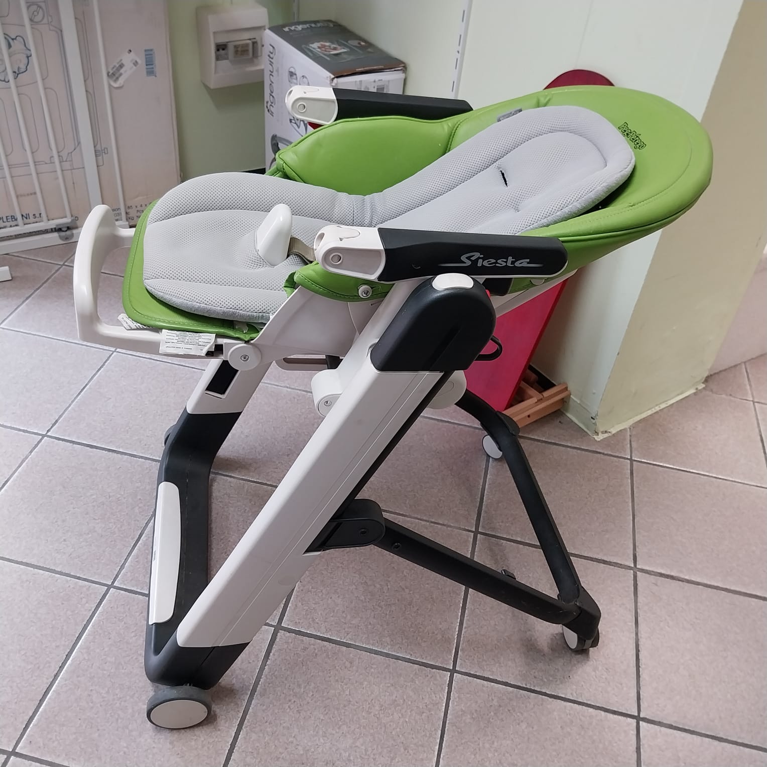 Il popolare seggiolone di PegPerego può essere usato già dalla nascita, grazie allo schienale reclinabile. L'angolo tra il sedile e lo schienale è aumentato e il sedile scorre leggermente in avanti, permettendo al bambino di stare comodo durante brevi fasi di riposo.