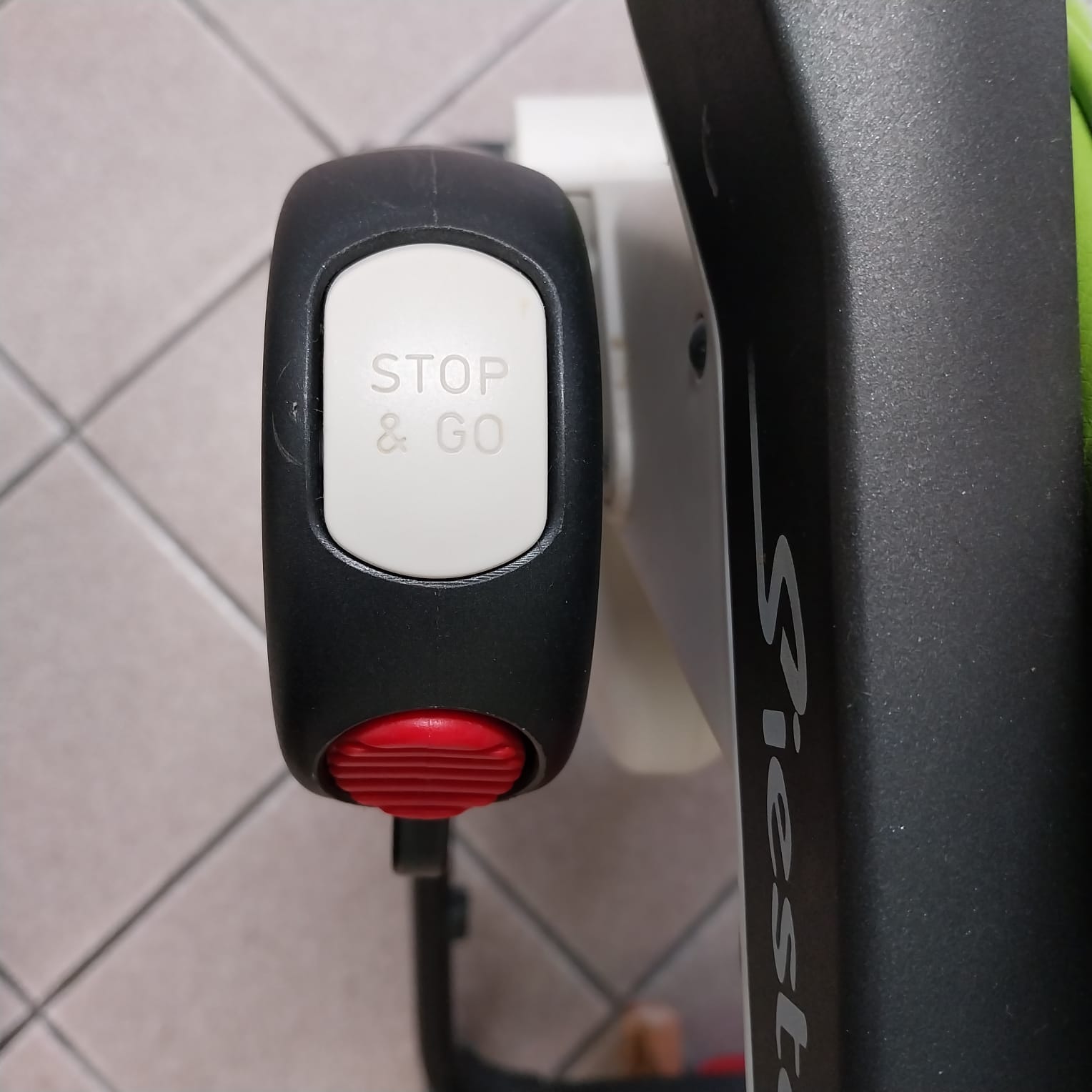 Il sistema integrato "Stop & Go" permette di spostare facilmente il seggiolone o di attivare il sistema frenante in modo che il seggiolone rimanga saldamente in piedi