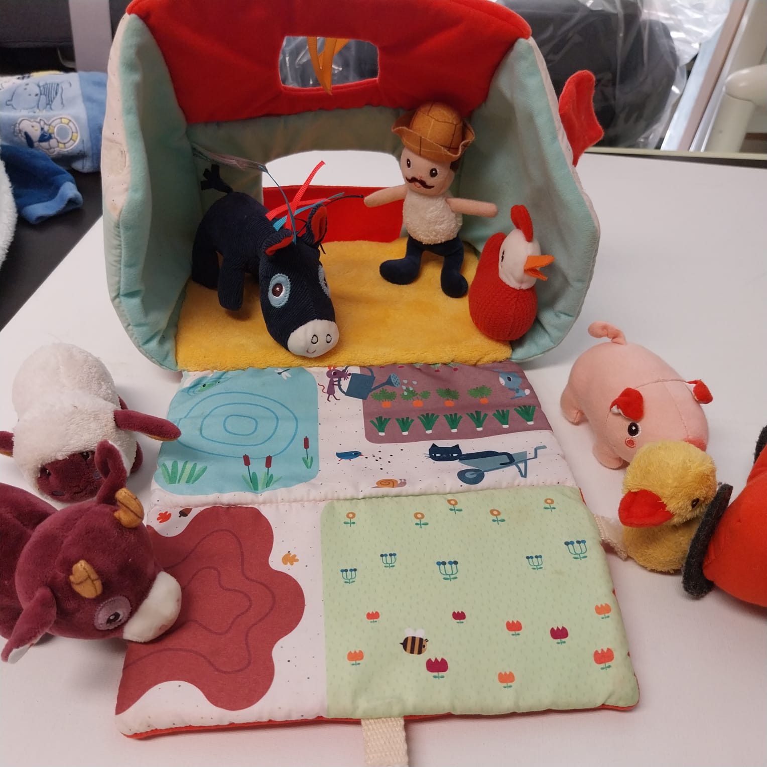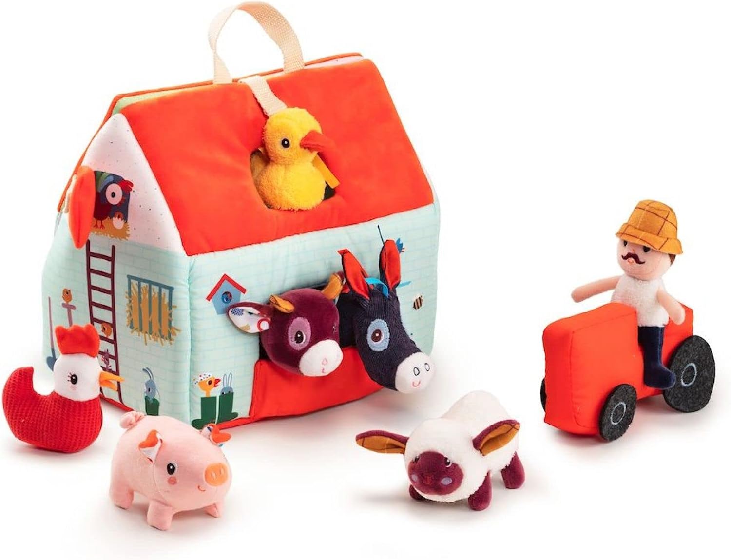 Fattoria in tessuto con 8 accessori: scopri una adorabile fattoria in tessuto, accompagnata da 8 accessori divertenti.