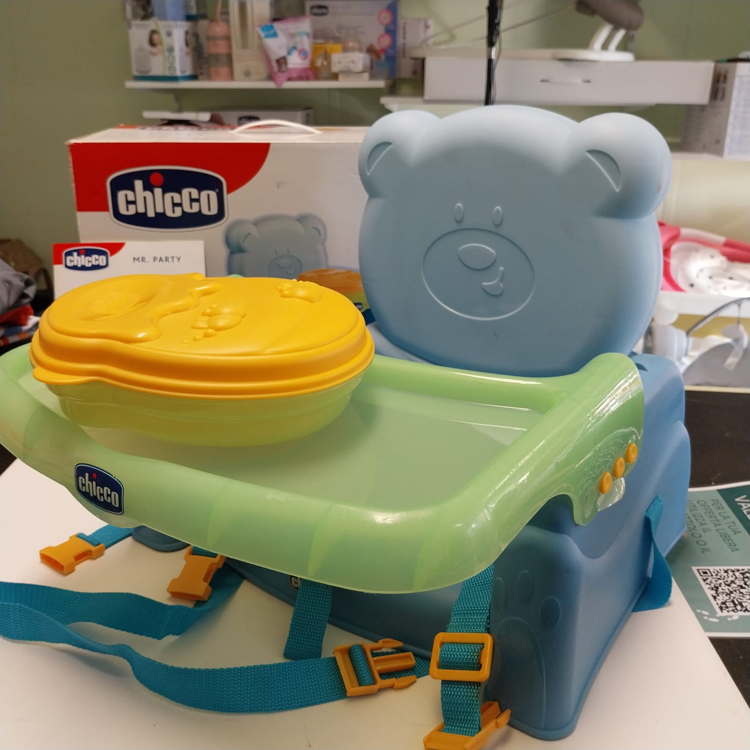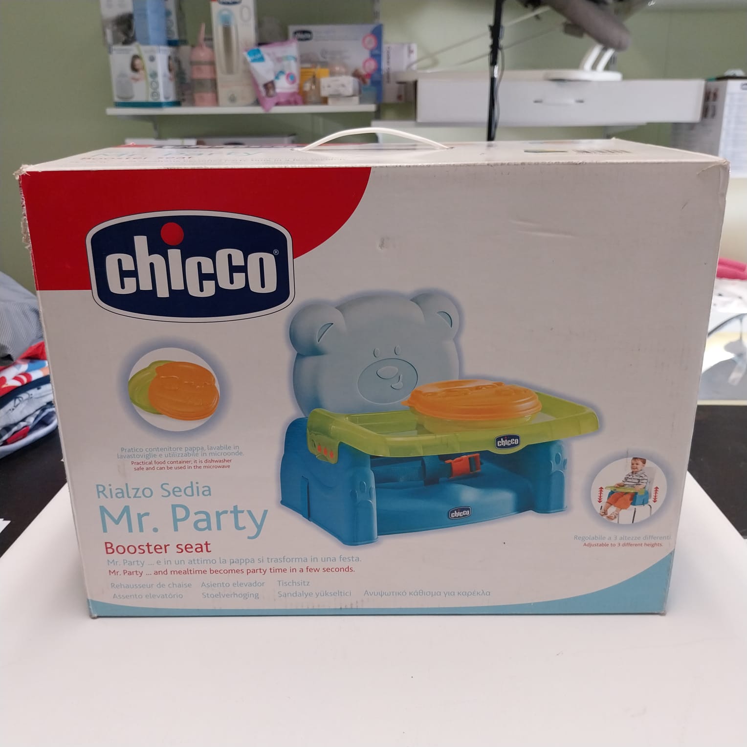 Rendi il momento della pappa un vero divertimento con il simpatico rialzo sedia Chicco Mr. Party! Questo seggiolino portatile a forma di orsetto è la soluzione ideale per permettere al tuo bambino di stare a tavola con tutta la famiglia, sia a casa che fuori.