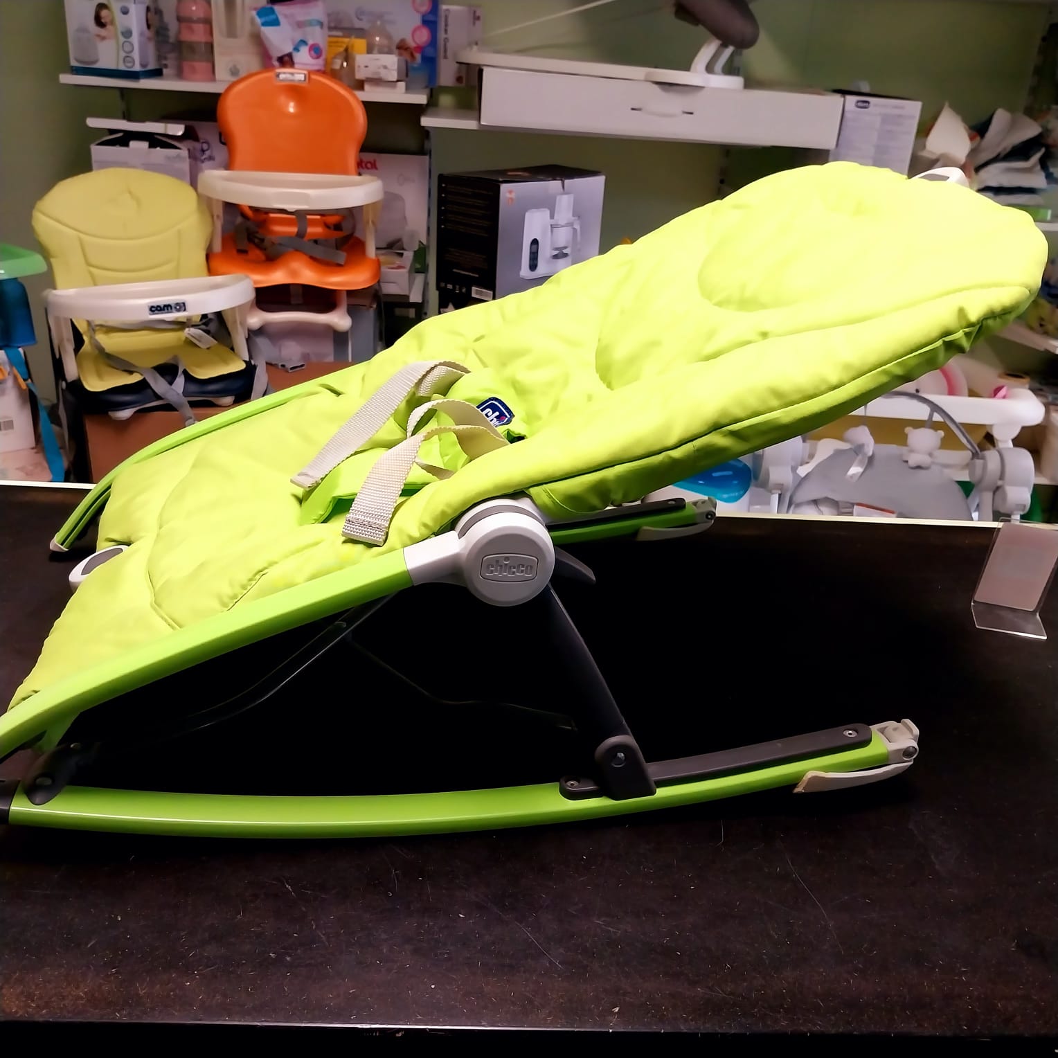 Si richiude facilmente, ed è una perfetta compagna di viaggio la Sdraietta Pocket Relax di Chicco E’ imbottita per dare il giusto confort al bebè, ha imbracatura integrata e lo schienale si può reclinare in tre diverse posizioni. Togliendo i piedini può diventare un dondolino.